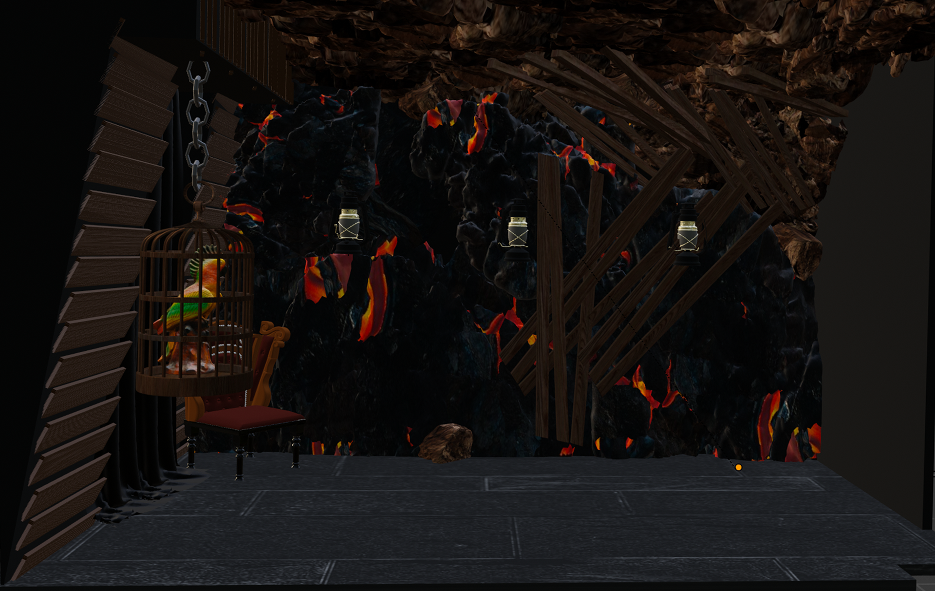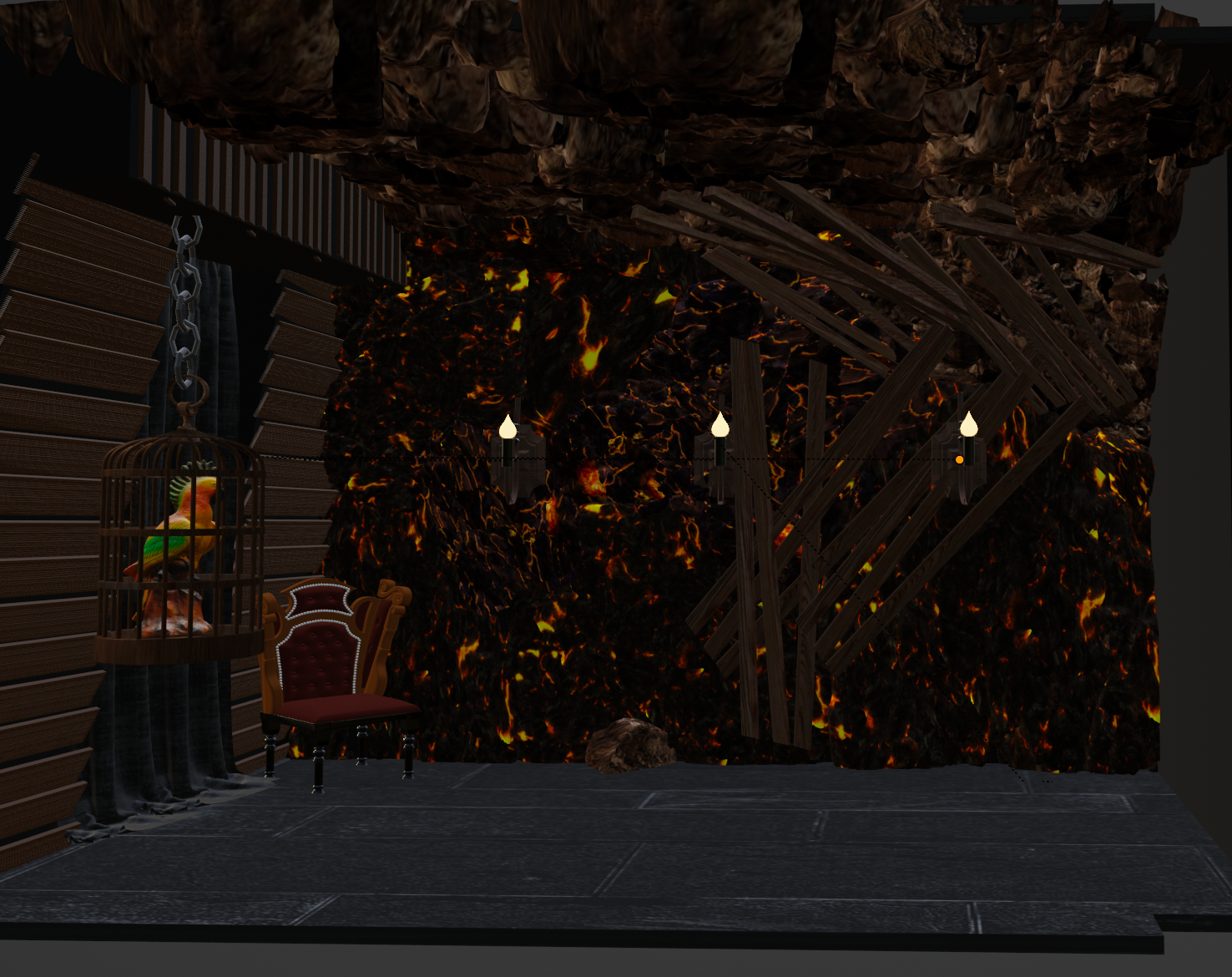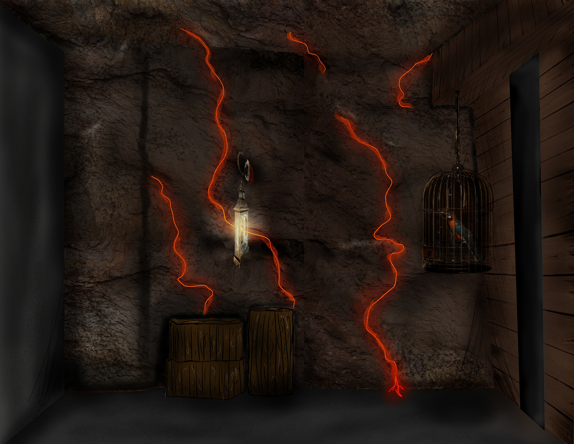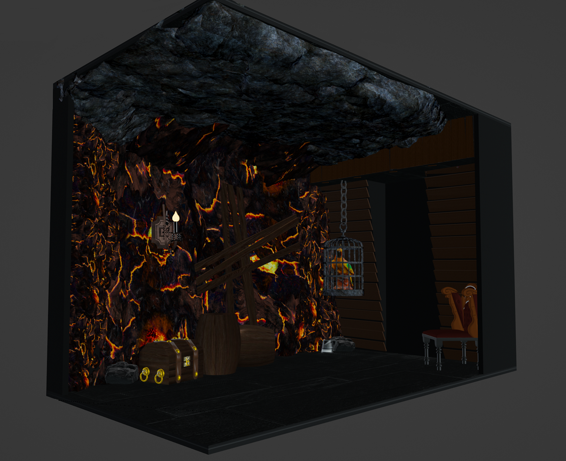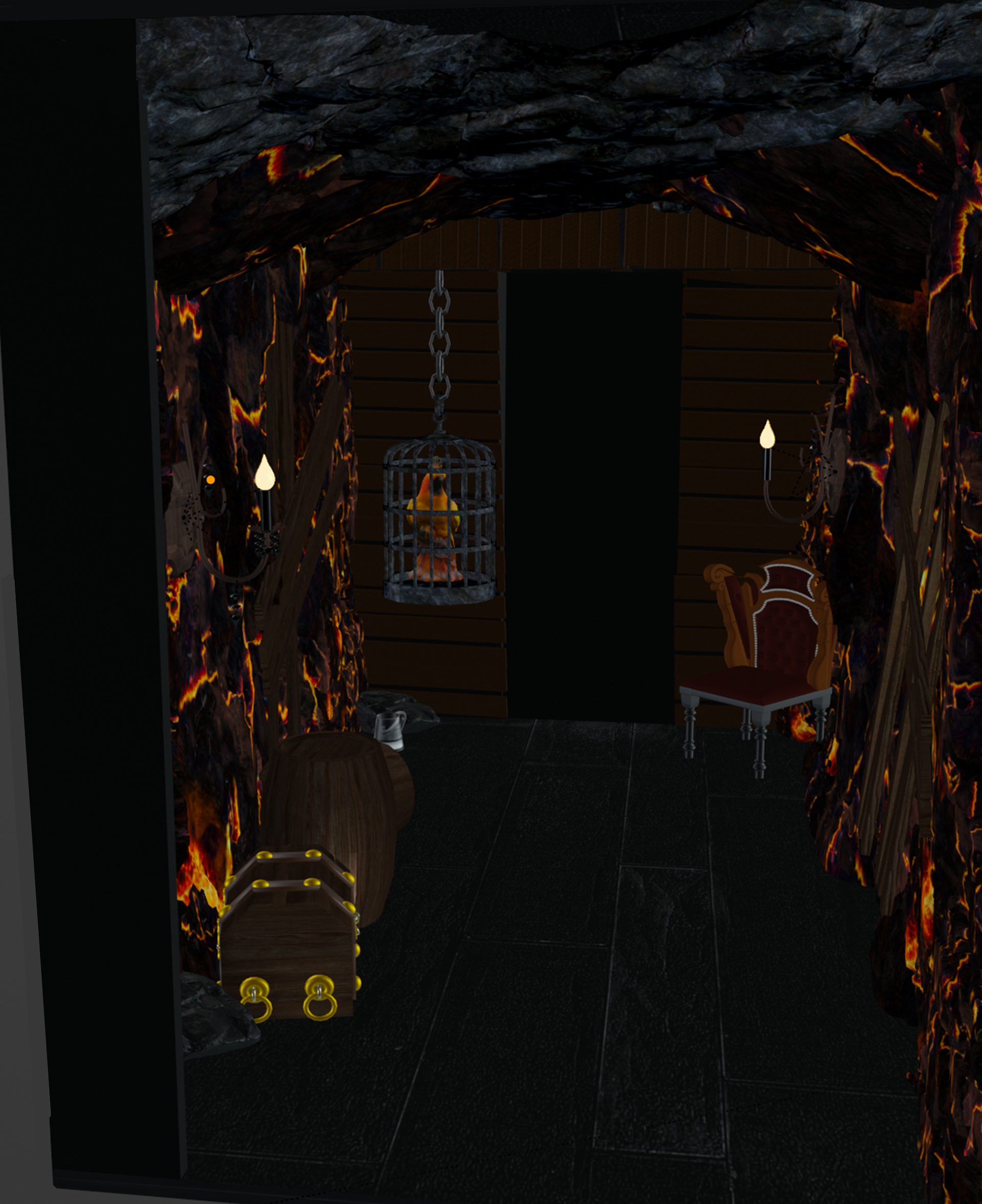 Die Wände sind fertiggestellt. In der finalen Ausarbeitung erfolgten manche Anpassungen. Lavainspirierte Elemente werden noch ergänzt.