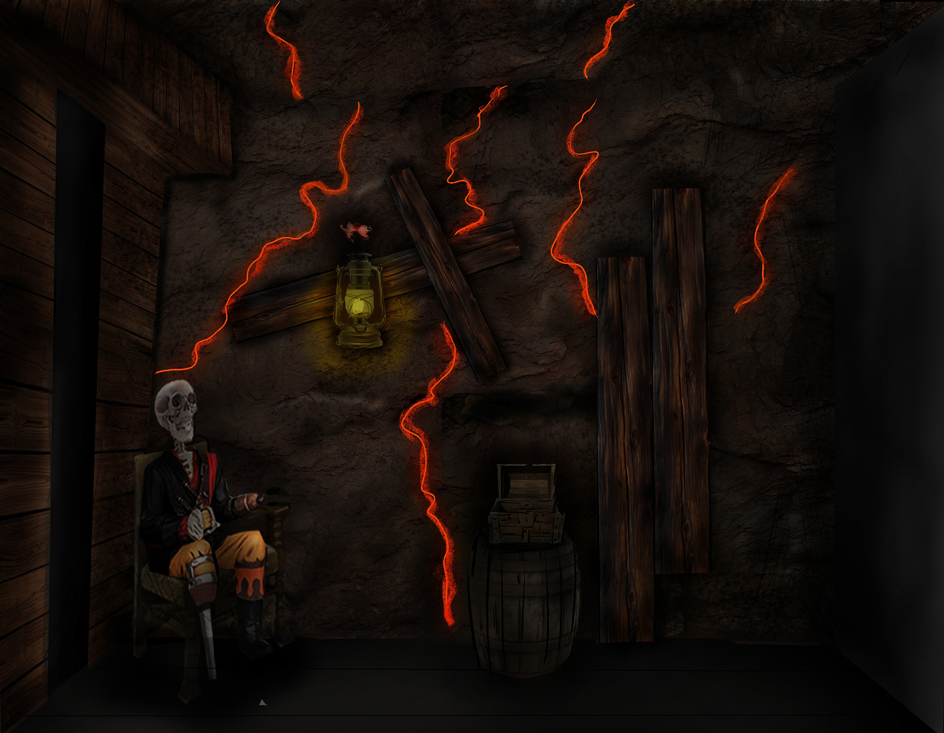Da „Kapitän Flynn und der Schatz der Poseidon“ der beliebteste Raum ist, wurde die Eingangshalle gestalterisch daran angelehnt.